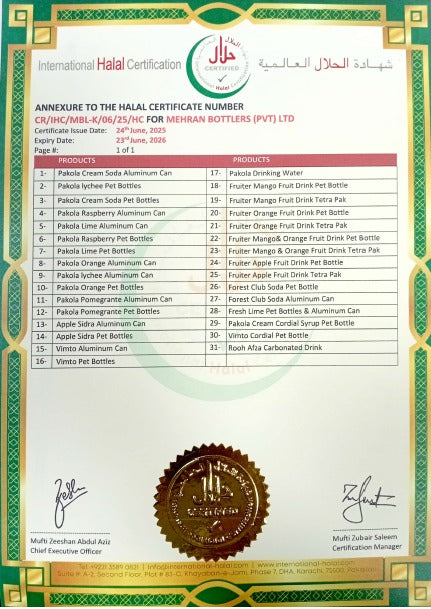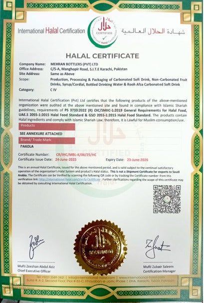 Mehran Bottlers (Pvt.) Limited is a Pakistani corporation, manufacturer and retailer of carbonated beverages, syrups and juices. The company is best known for its flagship product Pakola which was launched on 14th August 1950, and for its toll manufacturing services.
